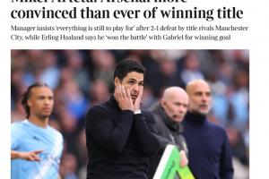 体育资讯04月20日讯 阿森纳1-2不敌曼城,赛后阿尔特塔被问到对夺得英超冠军的信念,他的回答登上了各大媒体的头条。