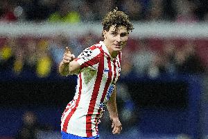 体育资讯4月9日讯 欧冠1/4决赛首回合,马竞在诺坎普挑战巴萨。本场比赛,阿尔瓦雷斯任意球直接破门帮助客队在上半场取得领先。